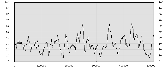 (по горизонтали: счётчик знаков; по вертикали: процент диалогов; размер скользящего окна: знаков, шаг: 1000 знаков) |