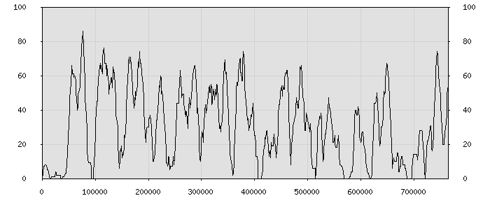 (по горизонтали: счётчик знаков; по вертикали: процент диалогов; размер скользящего окна: знаков, шаг: 1000 знаков) |