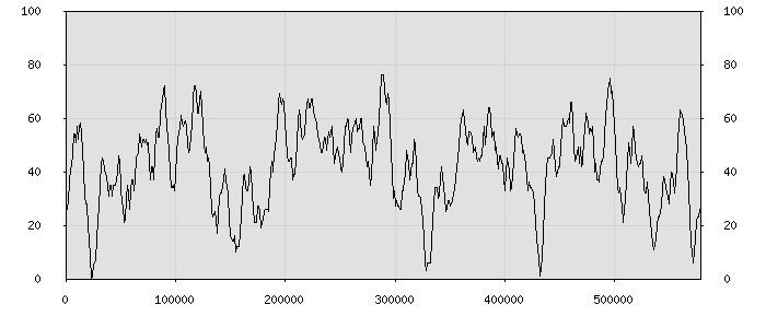 (по горизонтали: счётчик знаков; по вертикали: процент диалогов; размер скользящего окна: знаков, шаг: 1000 знаков) |