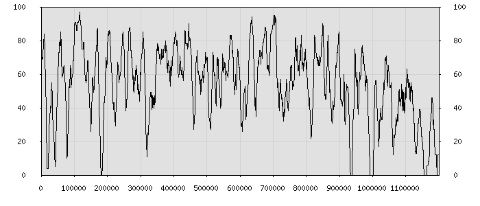 (по горизонтали: счётчик знаков; по вертикали: процент диалогов; размер скользящего окна: знаков, шаг: 1000 знаков) |