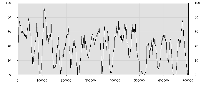 (по горизонтали: счётчик знаков; по вертикали: процент диалогов; размер скользящего окна: знаков, шаг: 1000 знаков) |