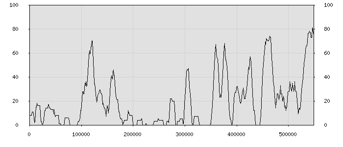 (по горизонтали: счётчик знаков; по вертикали: процент диалогов; размер скользящего окна: знаков, шаг: 1000 знаков) |
