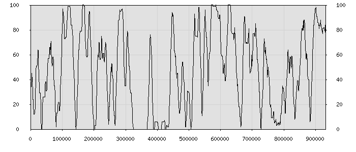 (по горизонтали: счётчик знаков; по вертикали: процент диалогов; размер скользящего окна: знаков, шаг: 1000 знаков) |