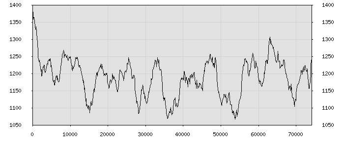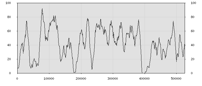 (по горизонтали: счётчик знаков; по вертикали: процент диалогов; размер скользящего окна: знаков, шаг: 1000 знаков) |
