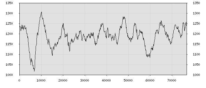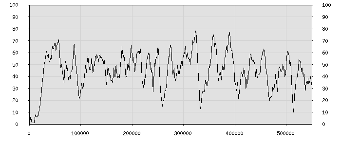 (по горизонтали: счётчик знаков; по вертикали: процент диалогов; размер скользящего окна: знаков, шаг: 1000 знаков) |