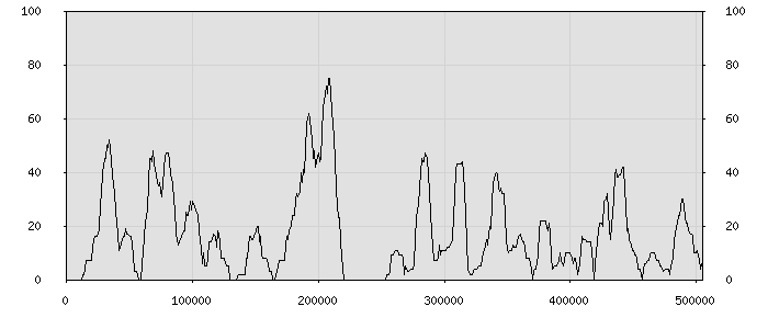 (по горизонтали: счётчик знаков; по вертикали: процент диалогов; размер скользящего окна: знаков, шаг: 1000 знаков) |