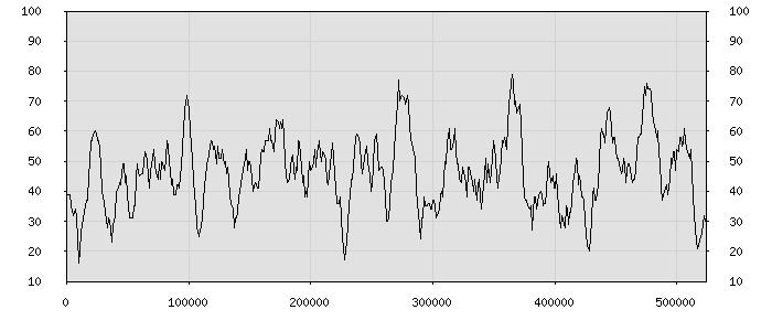 (по горизонтали: счётчик знаков; по вертикали: процент диалогов; размер скользящего окна: знаков, шаг: 1000 знаков) |