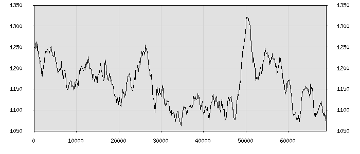 (по горизонтали: счётчик знаков; по вертикали: процент диалогов; размер скользящего окна: знаков, шаг: 1000 знаков) |