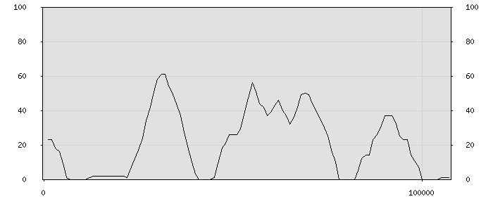 (по горизонтали: счётчик знаков; по вертикали: процент диалогов; размер скользящего окна: знаков, шаг: 1000 знаков) |