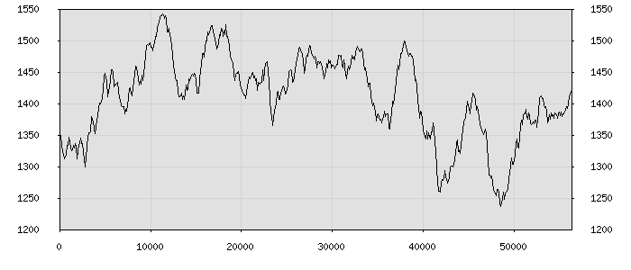 (по горизонтали: счётчик знаков; по вертикали: процент диалогов; размер скользящего окна: знаков, шаг: 1000 знаков) |