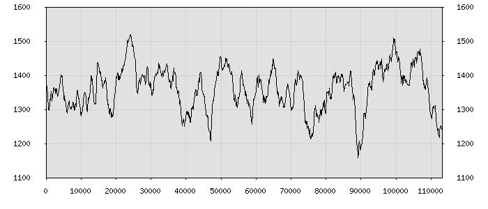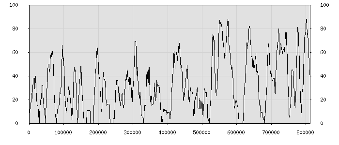 (по горизонтали: счётчик знаков; по вертикали: процент диалогов; размер скользящего окна: знаков, шаг: 1000 знаков) |