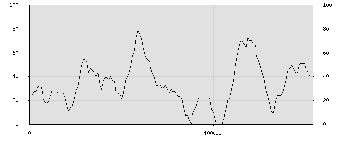 (по горизонтали: счётчик знаков; по вертикали: процент диалогов; размер скользящего окна: знаков, шаг: 1000 знаков) |