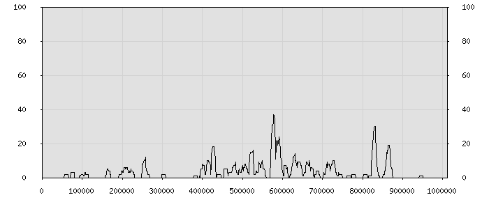 (по горизонтали: счётчик знаков; по вертикали: процент диалогов; размер скользящего окна: знаков, шаг: 1000 знаков) |